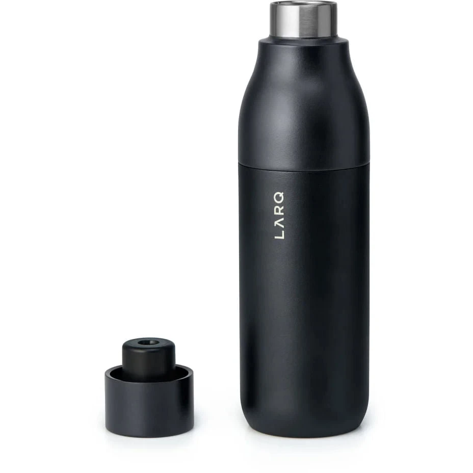 The LARQ Bottle PureVis is the world’s first self-cleaning water bottle and water purification system. It uses PureVis technology to eliminate up to 99%* of bio-contaminants such as E. coli from your water and bottle.