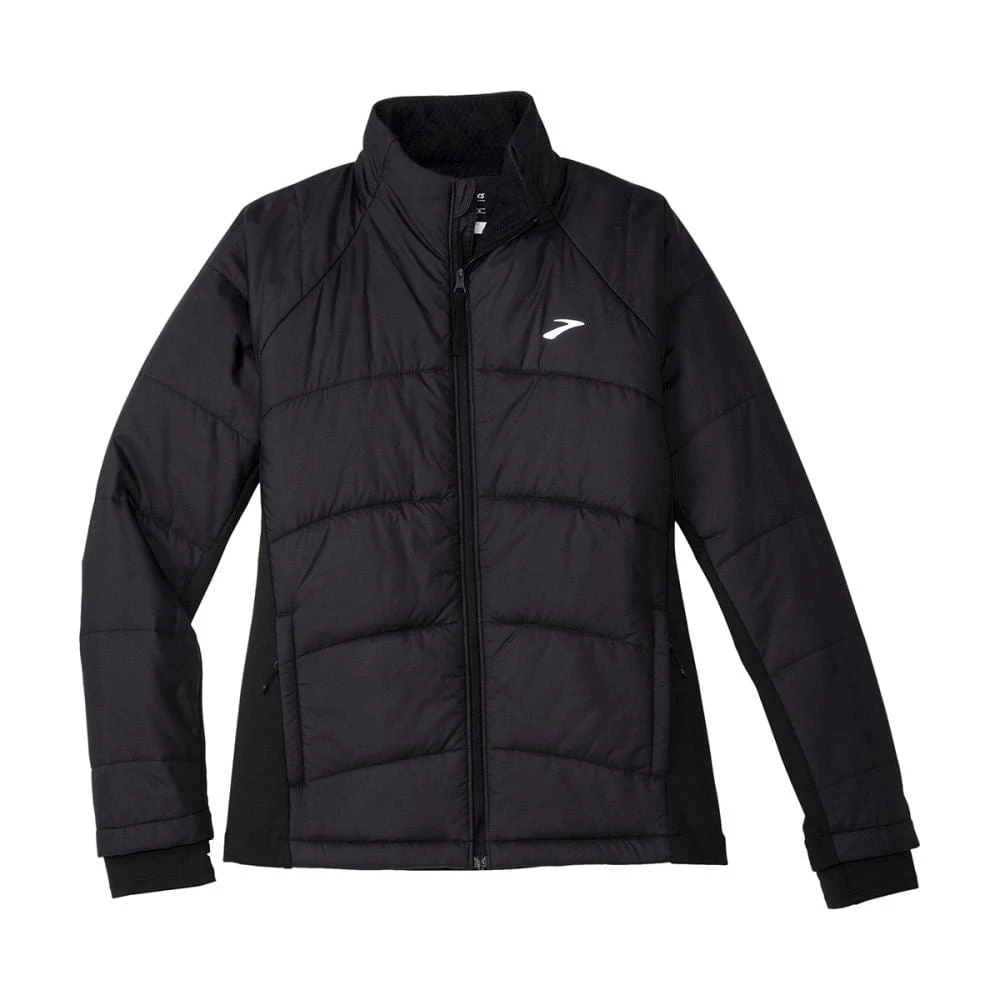 There’s no bad running weather for the Shield Hybrid Jacket 3.0 women’s jacket. This jacket features windproof, water-repellent protection plus extra warmth thanks to the 120g THERMOLITE insulation. Fitted cuffs and a tall collar help hold that warmth close.