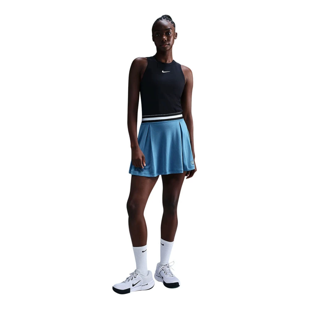 Whether you’re warming up on the court or lounging at home, this tennis skirt provides timeless style and function. Striped taping at the waistband adds a classic, sporty look, while lightweight, sweat-wicking fabric helps keep you comfortable as you take on all your dynamic movements. Store an extra ball in the pocket in the inner shorts so you’re always ready for your next serve.