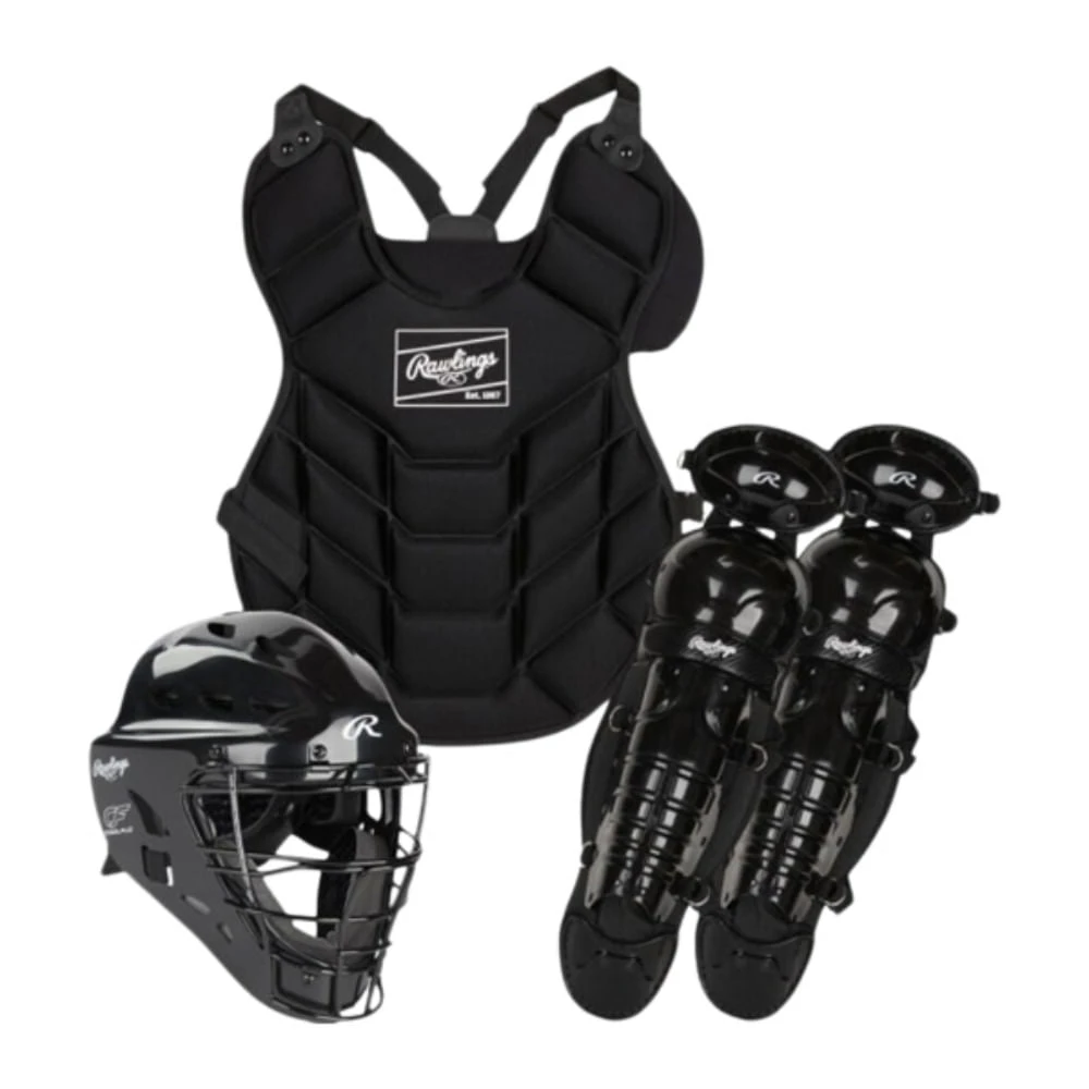 Introducing the Rawlings Players Series 2.0 Junior 7-9 Baseball Catchers Set. The Rawlings Players Series 2.0 Catchers Set includes Leg Guards, Chest Protector, and Catcher’s Helmet. This set is recommended for players ages 7-9.