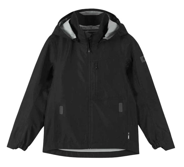 Very light, waterproof and breathable all-weather jacket for kids. 2.5 layer fabric: no lining, yet pleasant and smooth on the inside. Easy to take along, packs into small space.