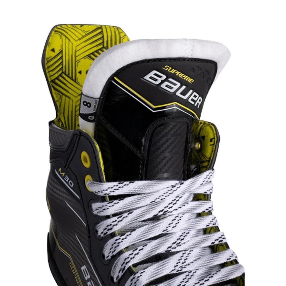 Enjoy the thrill of the game with a skate designed for comfort. The SUPREME M30 Skate features thick ankle pads and a forgiving boot flex – promoting a more enjoyable skating experience from the moment you lace up.