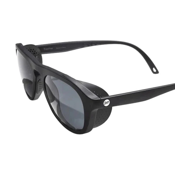 Mountaineering sunglasses for the modern explorer. A classic aviator shape meets the iconic glacier goggle. Removable magnetic sun shields protect your eyes from side glare, while perforations prevent fogging and enhance peripheral vision. The Treeline is a medium sized frame that fits most head sizes and shapes. Sculpted nosepads and arms are designed to provide just the right amount of grip without causing discomfort ensures a comfortable fit in all elements. Fit check: sun shields should fit close to the face without creating pressure.